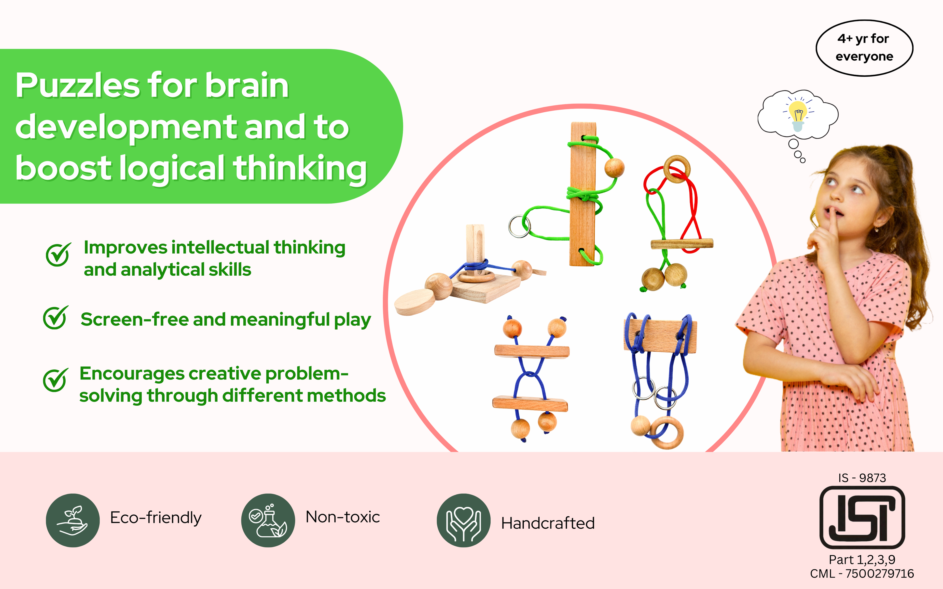 Wooden puzzles help to develop logical thinking, analytical skills, problem-solving skills, spatial...