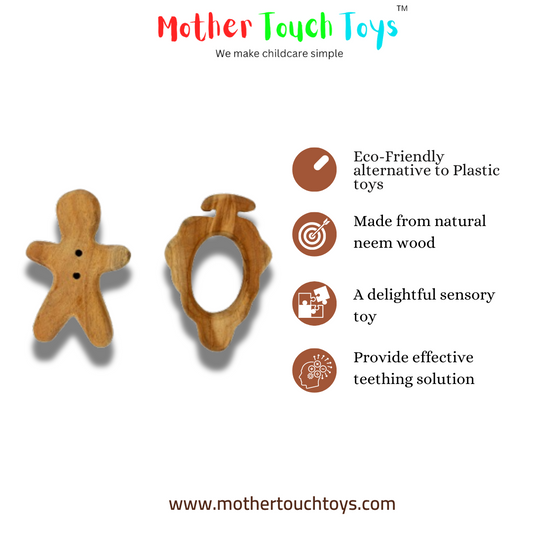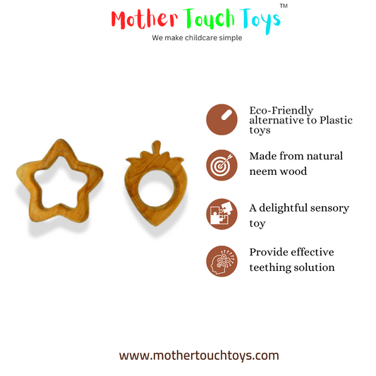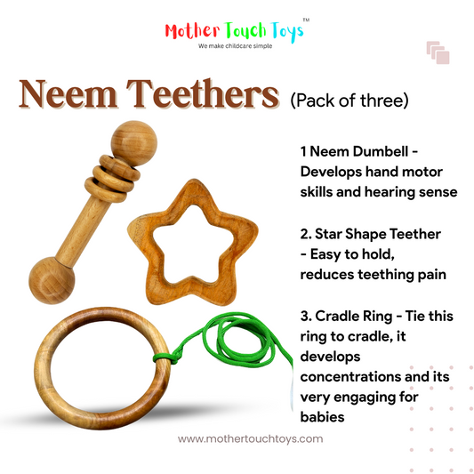 These teethers are made from Neem wood & beech wood. Hence these teethers are purely non-toxic, antibacterial & it has a soft finish. They are washable as well.